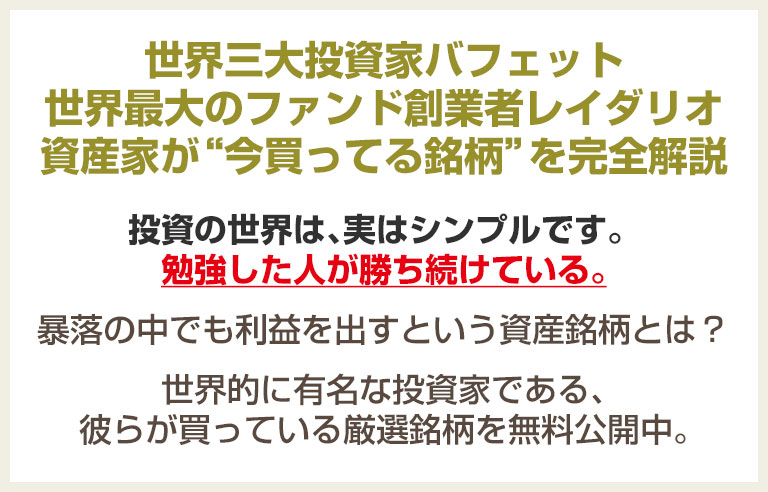 などの資産家が、実際に買ってる銘柄や比率も公開します。